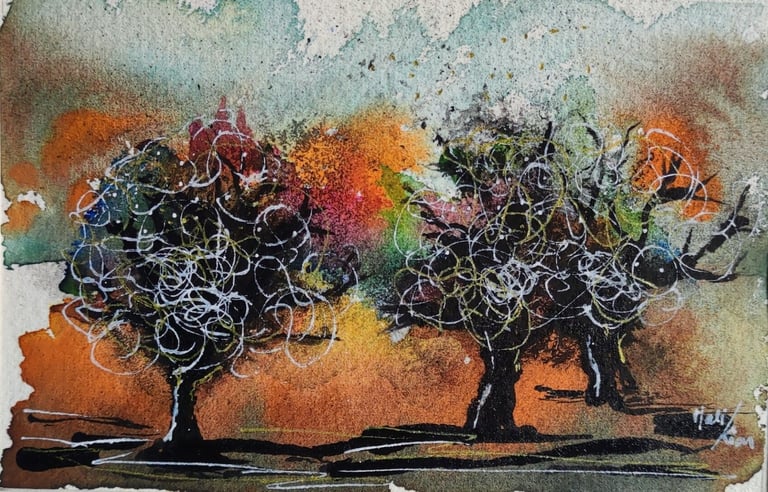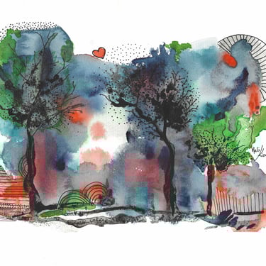 Arbres 2 -Aquarelle / Posca 15 X20